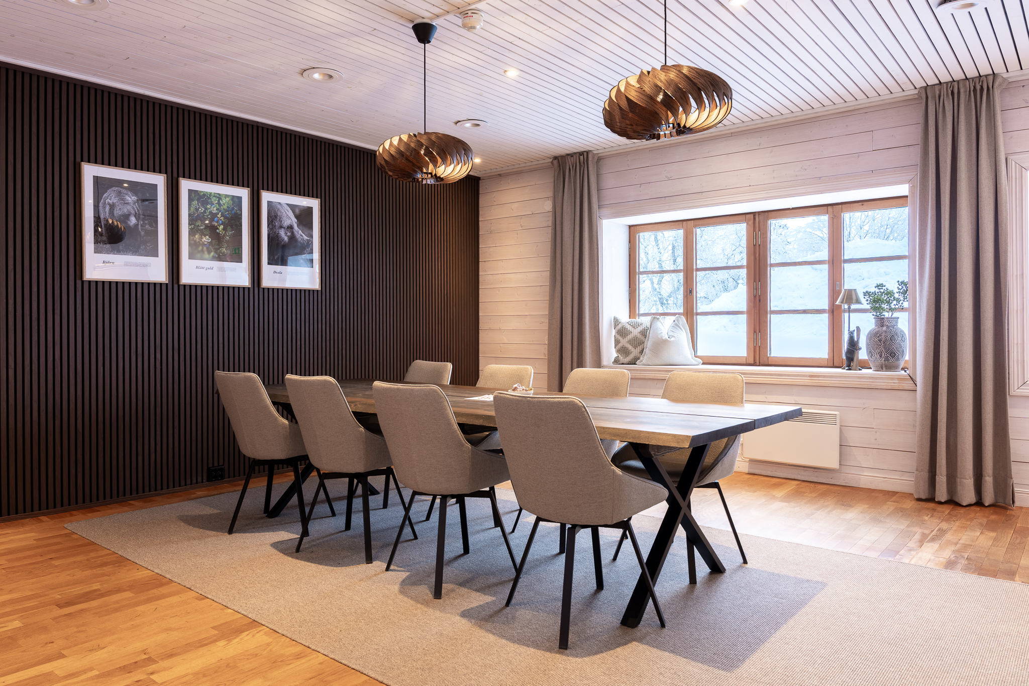 Yta 30 m2. Runt bord. Lämplig för upp till 18 personer. Det perfekta styrelserummet. Rummet ligger på markplan med fjällutsikt.